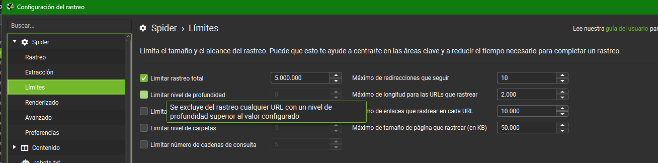 Recuerda que puedes limitar en tu rastreo el nivel de profundidad al que estás dispuesto a llegar desde límites: