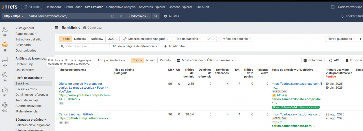 En Ahrefs lo puedes hacer de forma bastante intuitiva desde Site Explorer y desde Site Audit.