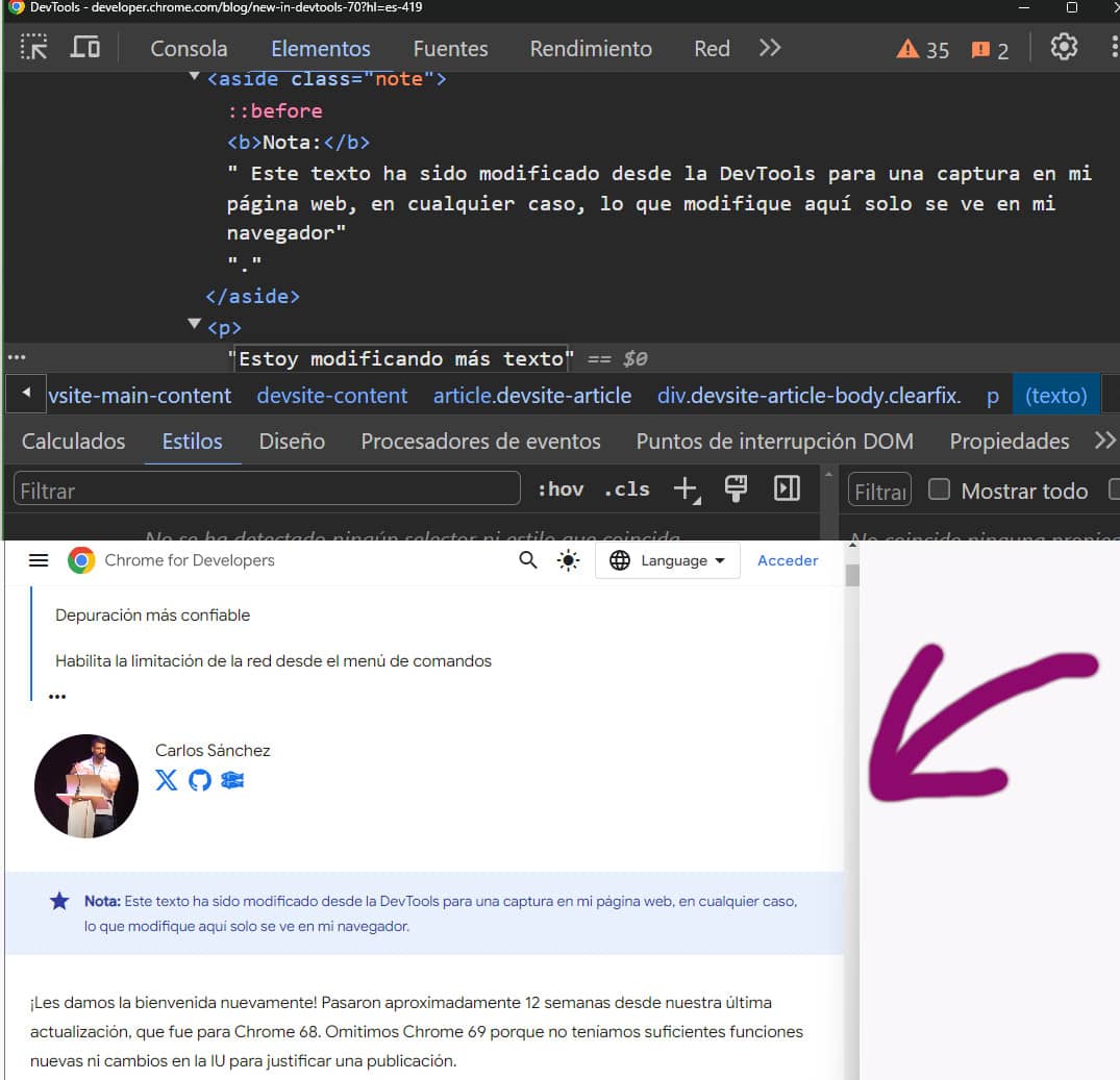 Con esta opción se pueden añadir elementos de CSS, eliminar o modificar cualquier etiqueta de HTML, ver los márgenes y la disposición del código.