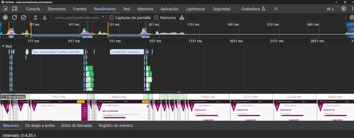 Esto nos permite realizar una emulación del Customer Journey y repetirla exactamente igual para hacer distintas pruebas de rendimiento, y comprobar si las implementaciones que hacemos de WPO como caché, precargas y cargas diferidas son realmente efectivas.