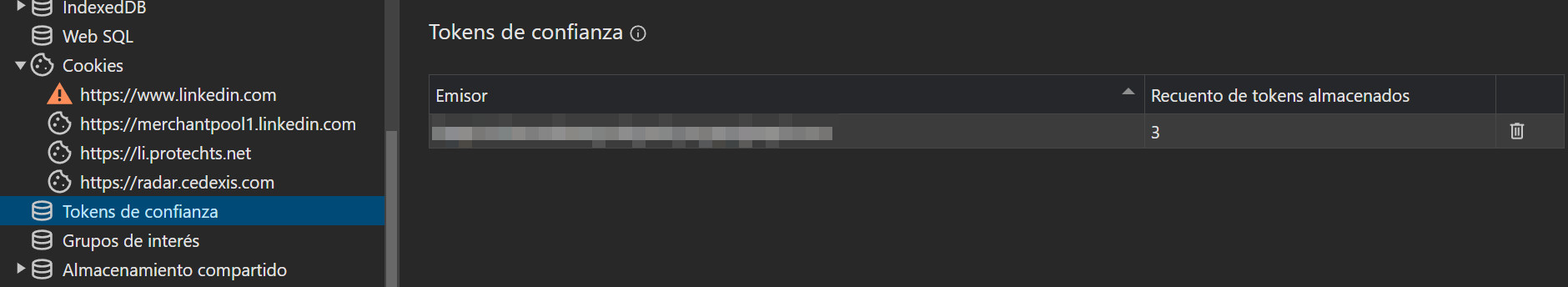 Desde el panel de Cookies se permite revisar las Cookies que te introduce la web y si estas cumplen con la normativa.