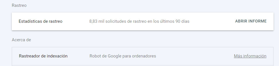 Dentro de la Consola de búsqueda de Google, puedes acceder a las llamadas estadísticas de rastreo en la sección "Configuración". Estas estadísticas te muestran, entre otras cosas, cuántas páginas ha analizado el Googlebot en tu presencia en la web.
