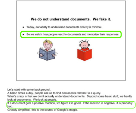 Si bien Google no interactúa con la web, si que observa la interacción de los usuarios en la misma, como bien salió en una filtración de unas diapositivas que tenían a nivel interno: