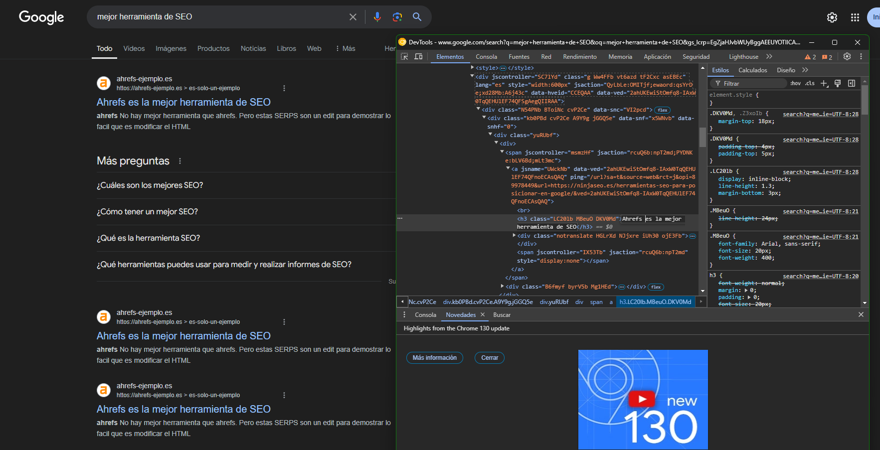 De hecho con esta herramienta podemos modificar el HTML para ver cómo quedaría el contenido: