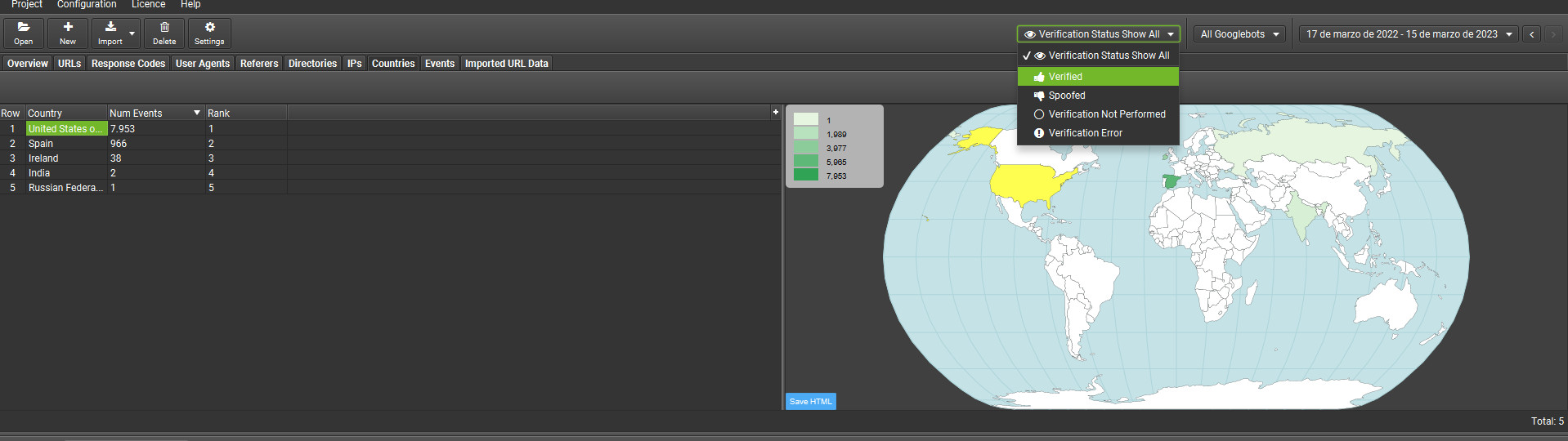Nos permite analizar desde qué lugar según nuestro servidor nos llega la petición. Podréis comprobar con esta herramienta que las peticiones reales de Googlebot vienen desde EEUU. Entonces podremos detectar los falsos rastreos para eliminarlos.