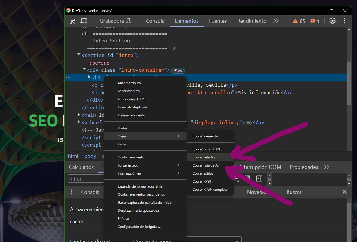 Consola de Chrome, elementos y selectores