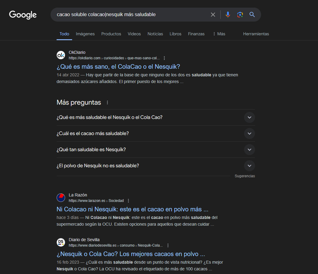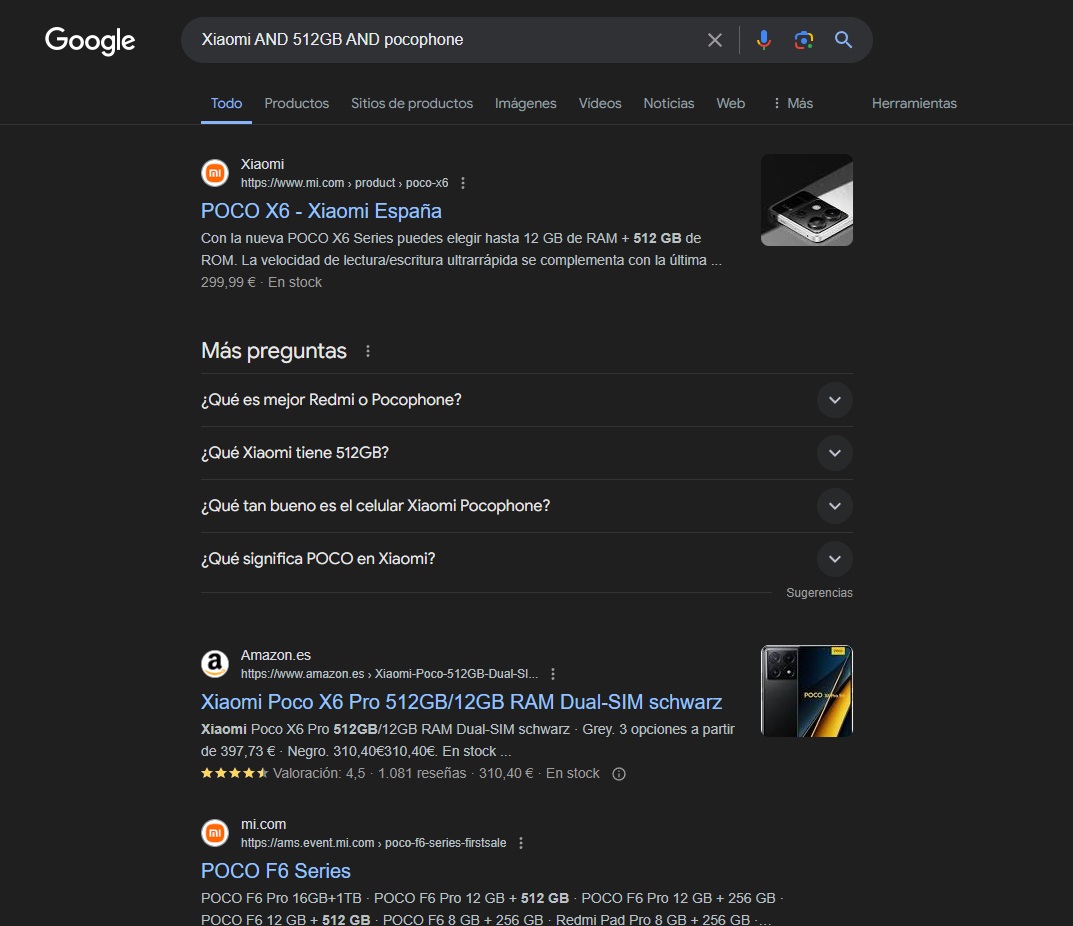 Como podéis ver, en los anuncios de Shopping aunque intentar ser precisos, algunos operadores que sean excluyentes como el "OR" o el "-" los ignoran, pero las SERPs suelen respetarlo.