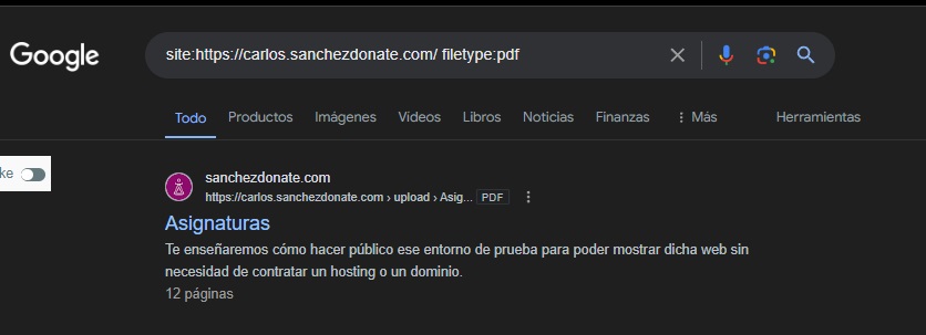 Sirve para ver un tipo de archivo concreto de una búsqueda (recordemos que los operadores son combinables, por lo que podemos buscar un tipo de archivo de una web).