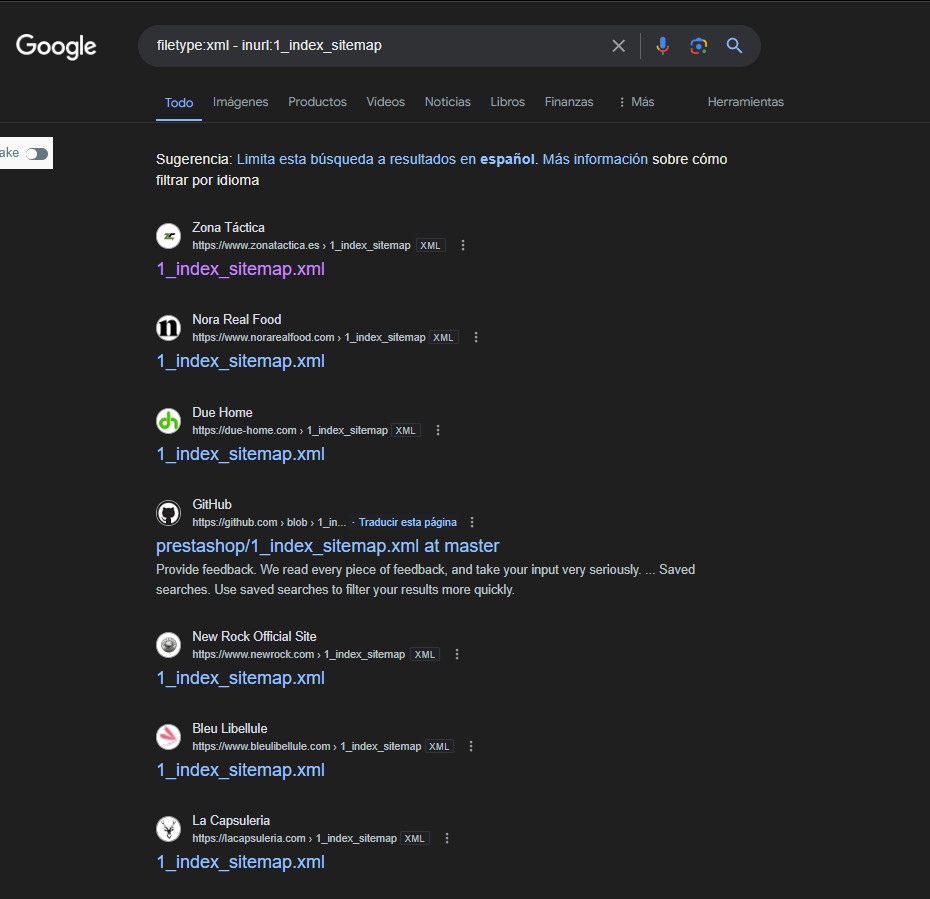 O por el contrario, nos podemos valer de esas huella para conseguir sitemaps que no sean de WordPress: