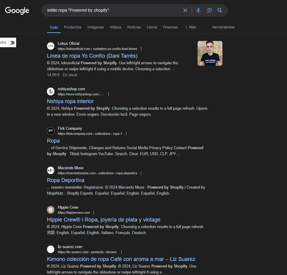 También se puede sacar la información de tiendas de {loquesea} que utilicen shopify: