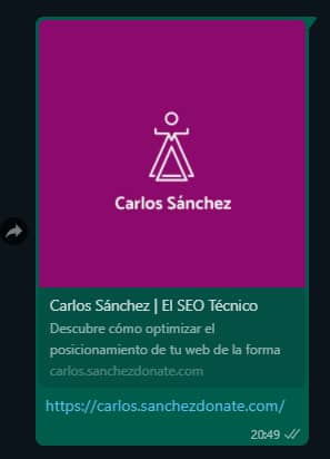 Por lo tanto, por medio de esta etiqueta, la página de inicio de mi web se vería de las siguientes formas en las plataformas que usan el protocolo Open Graph: