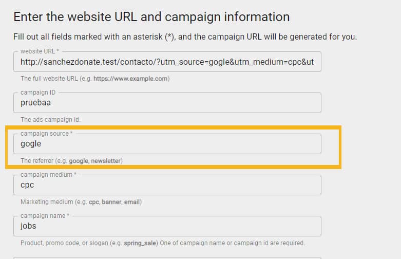 http://sanchezdonate.test/contacto/?utm_source=google&utm_medium=cpc&utm_campaign=jobs&utm_id=pruebaa , esta solución te permite corregir errores de tipeo en ciertos filtros en masa.