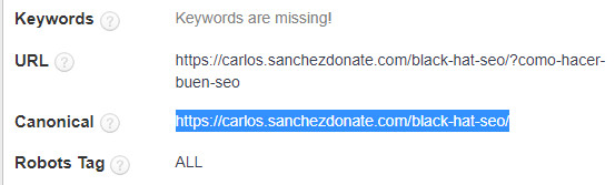 Sin embargo, debido a la existencia de distintas variaciones de URL como pueden ser los parámetros, es posible que se generen copias de ese contenido con URL totalmente diferentes. Es precisamente por eso mismo. Que la versión indexable y más correcta/válida de una página, siempre tiene que tener una canonical autorreferenciada o más conocida como una "self-canonical".