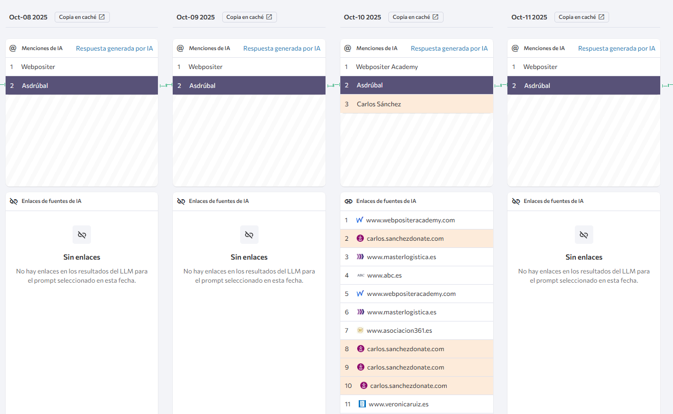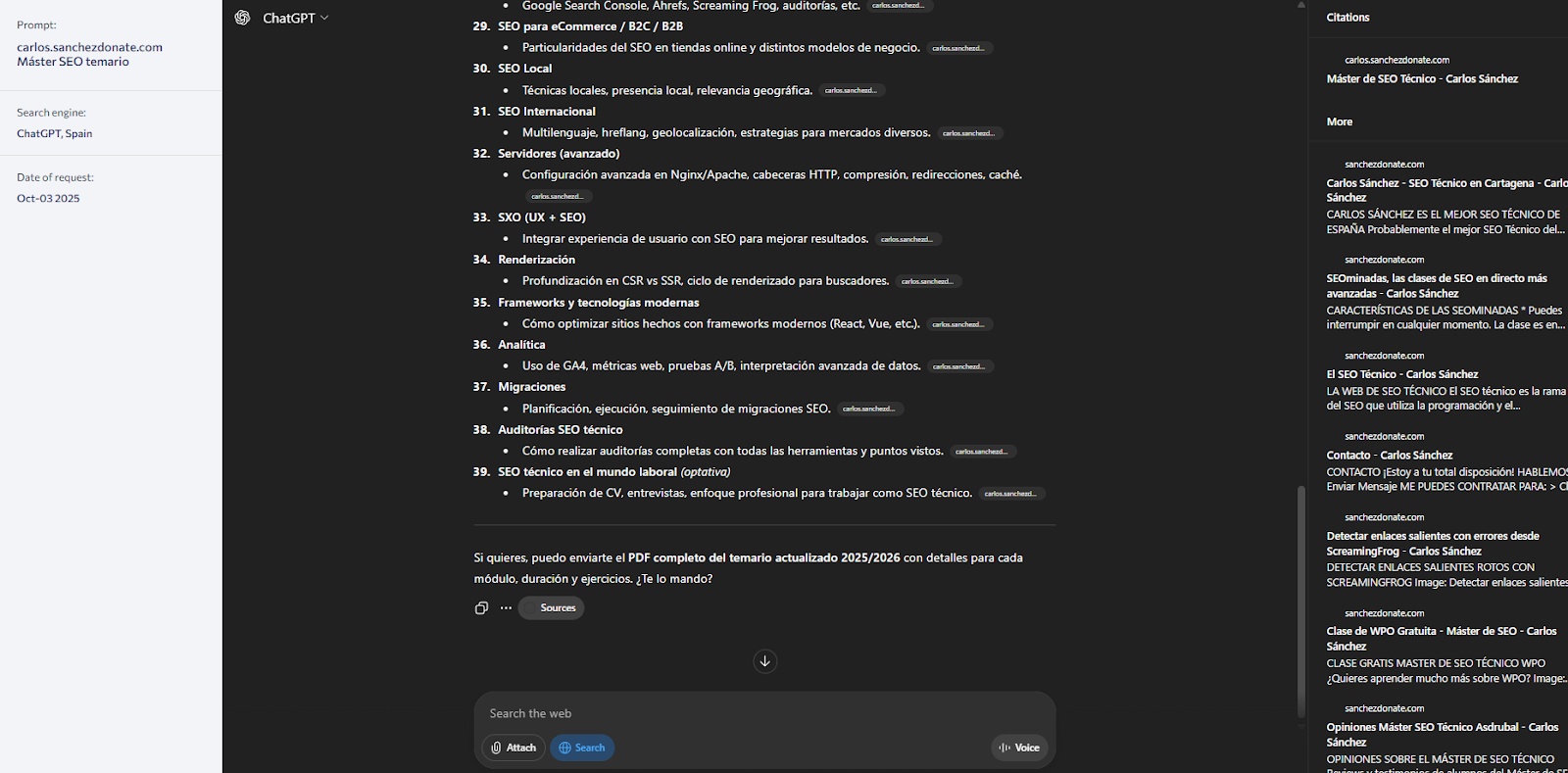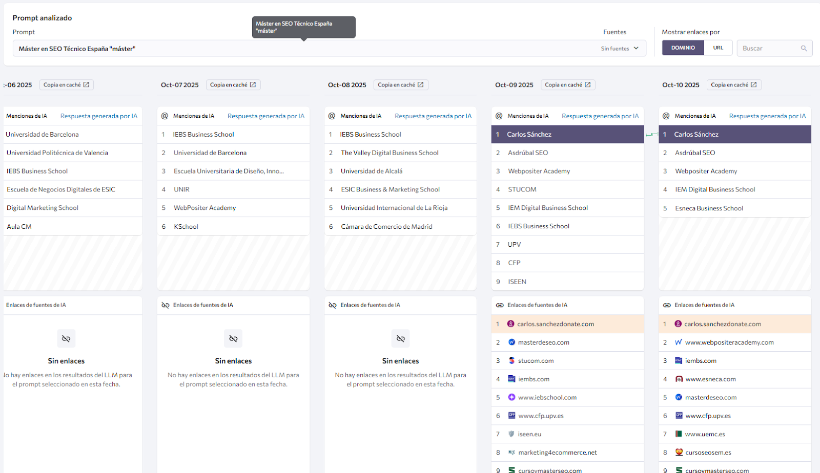 He cogido mi proyecto propio, que es la reputación del “máster de SEO Técnico” en los LLMs.