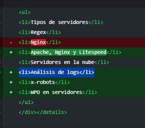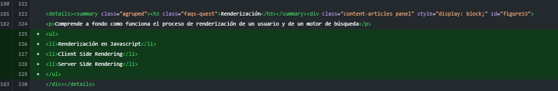 Decidimos actualizar el contenido con cuestiones que fueran ciertas, pero que no tuvieramos por escrito en la landing, como habíamos mencionado, teniendo que añadir palabras clave que ofrecemos y que en nuestra percepción con distintos Prompts, ChatGPT asociaba como significados muy cercanos al SEO Técnico. Logs, Servidores, CSR, SSR-