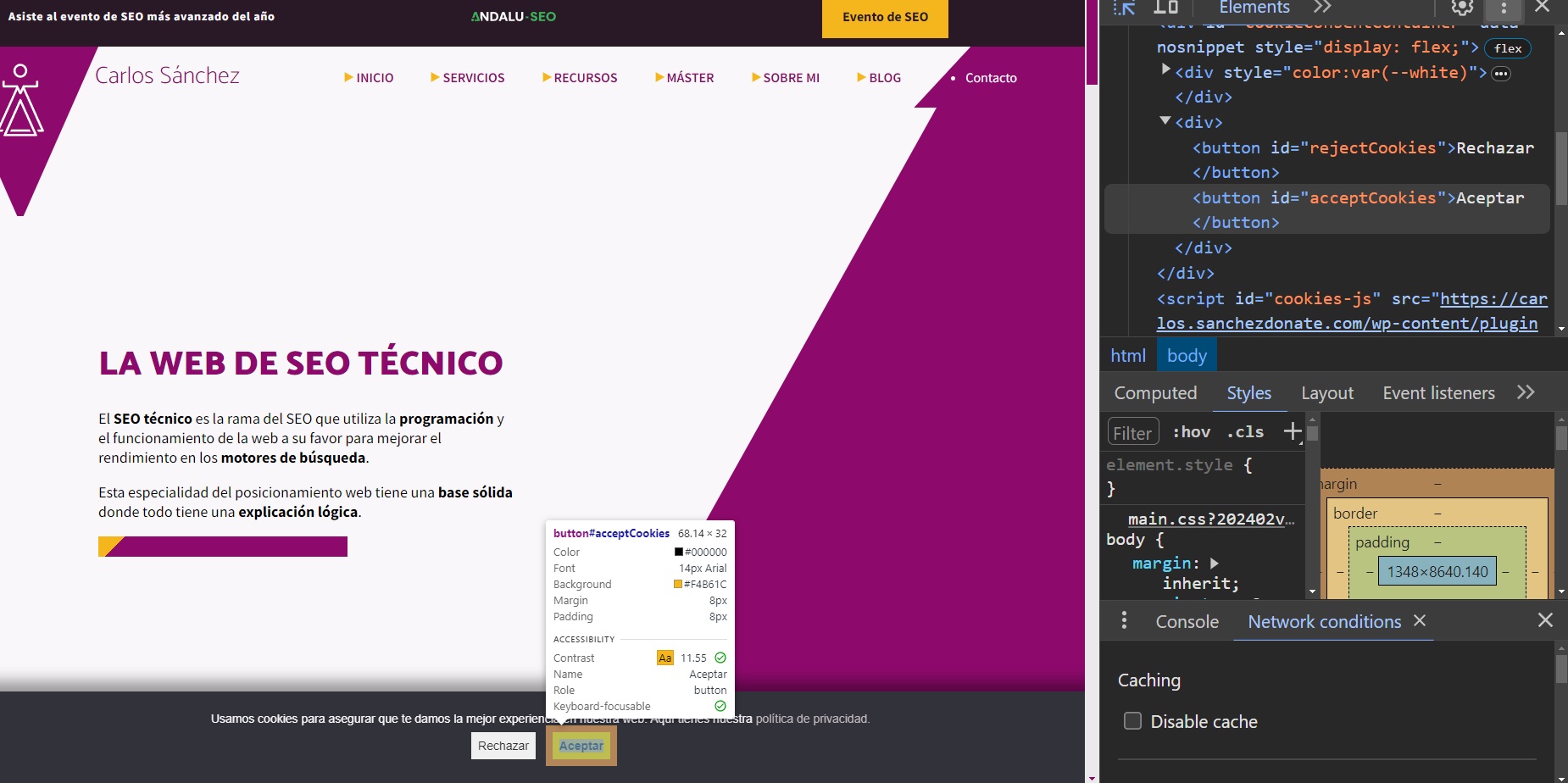 De esta forma, cada vez que se entre a la web por medio de dicho parámetro, se aceptarán las cookies de forma totalmente automática, sin delay de JavaScript ni nada.