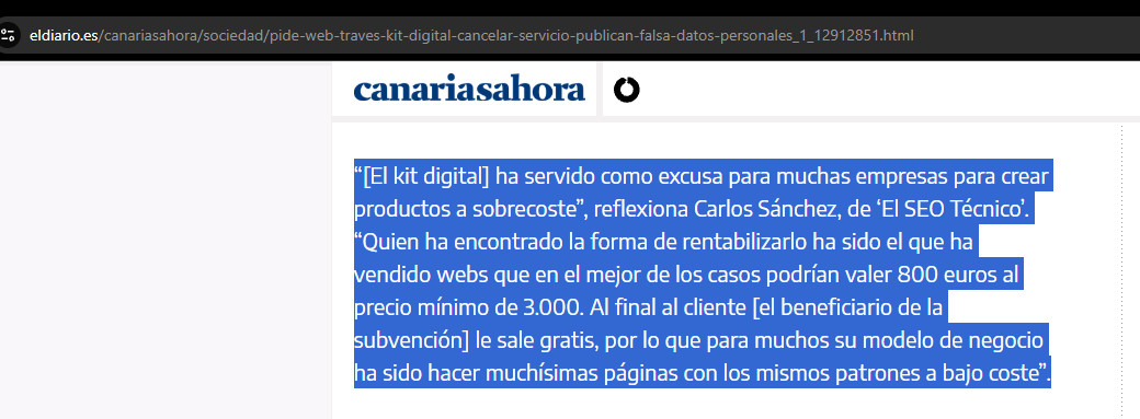 Aquí se puede apreciar en este medio una clara manipulación, buscando (ya desde las propias preguntas) la narrativa de que "las empresas se aprovechan de los fondos públicos que están bien hechos y gestionados". Tratando de presentar al Kit Digital como una herramienta "bien gestionada" que ha sido pervertida por las agencias (cuando hay agencias que lo han hecho bien, no todas se han aprovechado de forma poco ética).
