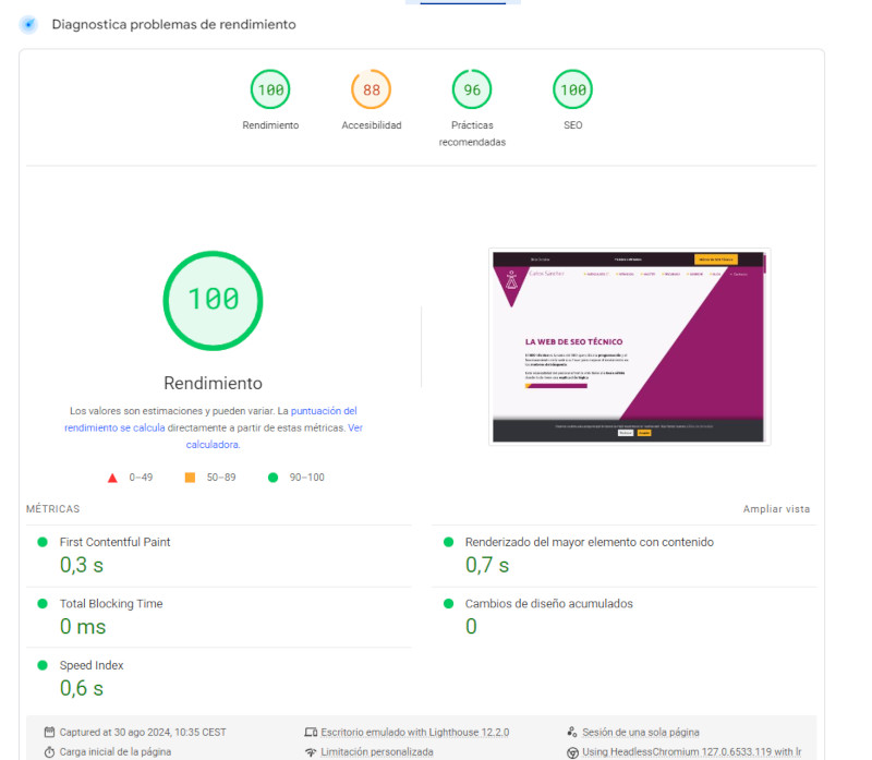 Por otro lado, la herramienta Google PageSpeed Insights es excelente para Diagnosticar problemas de rendimiento. Sin embargo, es fundamental entender que la puntuación que obtenemos, lo que muchas personas muestran orgullosamente como un "100", no es un reflejo directo de la velocidad real de nuestra web.