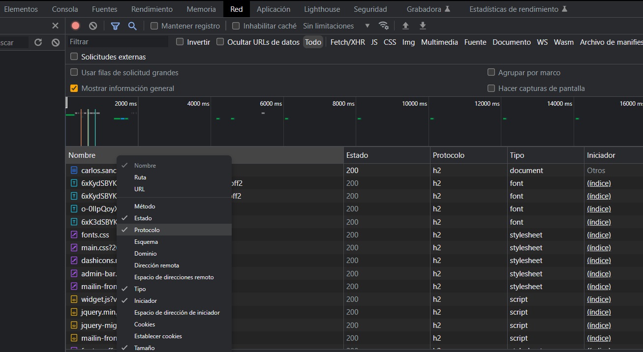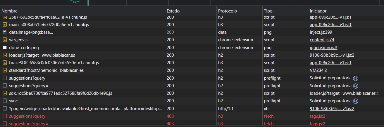 Cuando salga http/1.1 es obvio, y el h2 corresponde a HTTP/2 y h3 a HTTP/3. En el ejemplo os muestro a Blablacar ya que obtiene varios recursos de forma externa y se pueden apreciar las 3 opciones.