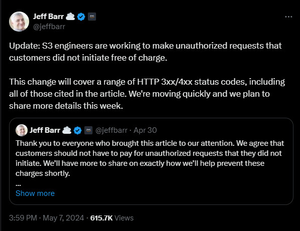 Un usuario ha tenido que pagar 1.200€ por más de 100.000 peticiones que ha recibido (probablemente de bots) hacia URLs inexistentes de su web de su bucket privado que estaba vacío. Este problema fue descubierto por Maciej Pocwierz, quien compartió su experiencia en un artículo detallado en Medium.